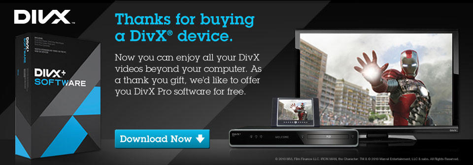 DivX Plus video yazılım paketi DivX Web Player Plus,DivX Plus Codec Pack,DivX Converter Plus bulunuyor bu paketi 1 yıl ücretsiz kullanabilirsiniz,buradan ulaşın.