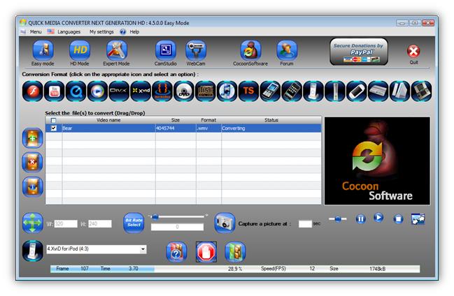 Quick Media Converter HD ile bilinen bir çok video ve ses dosyalarını dönüştürebilirsiniz,basit ve uzman mod’da iki arayüze sahiptir bunun yanında webcamden kayıt ,resim çekmek, youtube ve benzeri sitelerdeki videoları dönüştürme özelliği bulunmaktadır,yazılımı buradan ulaşıp indirebilirsiniz.