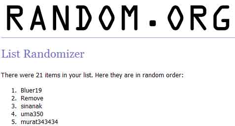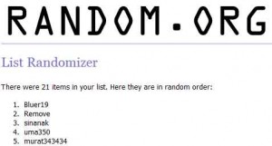 Kazananlar random.org sitesi kullanılarak otomatik seçilecek ve isimleri bu konu altında açıklanacaktır.