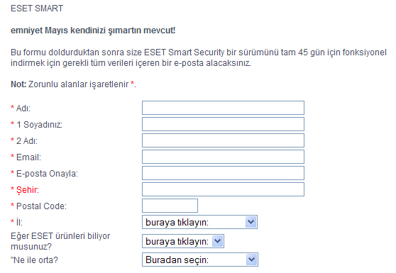 ESET Smart Security kampanyası ile 45 günlük ücretsiz kullanım alabilirsiniz.