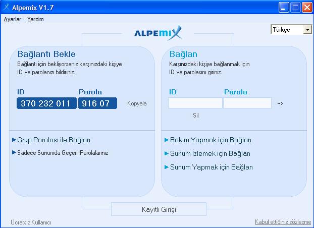Alpemix uzaktan destek ve sunum için en hızlı ve kolay yoldur. Farklı yerlerdeki tanıdıklarınızla, aynı bilgisayarın başında yan yana oturuyor gibi çalışabilirsiniz. Üstelik ücretsiz ve Türkçe. Üyelik gerektirmiyor, kurulum gerektirmiyor.