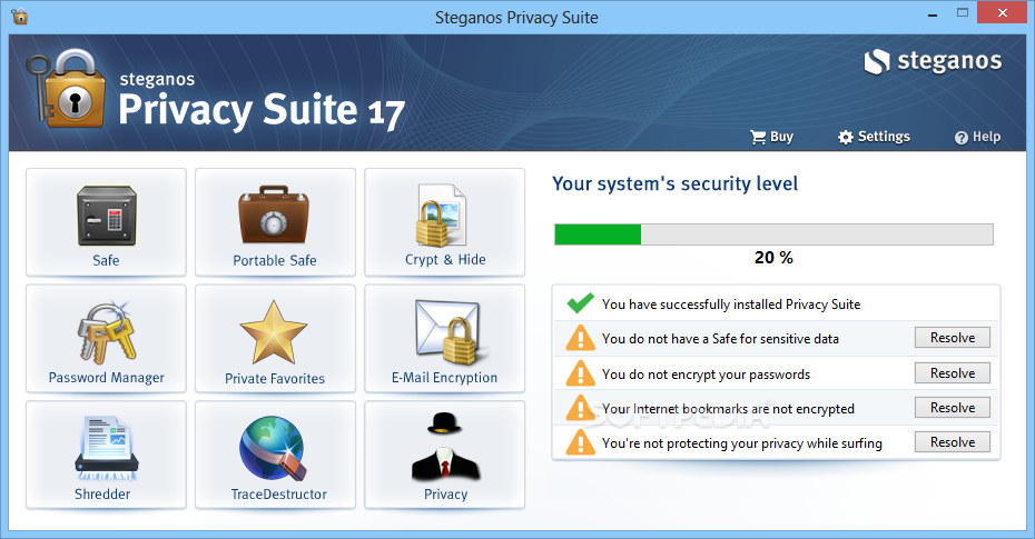 Steganos Privacy Suite programı önemli dosyalarınızı güvence altına almanızı sağlıyor. Yazılım erişime izin vermek istemediğiniz dosyaları kendi bünyesinde saklıyor ve erişime engel oluyor.