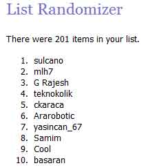 1-sulcano 2-mlh7 3-G Rajesh 4-teknokolik 5-ckaraca 6-Ararobotic 7-yasincan_67 8-Samim 9-Cool 10-basaran