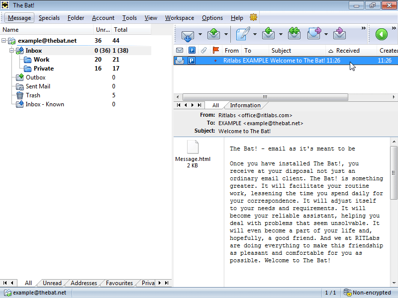 The Bat! Professional Edition son derece güçlü ve kullanımı kolay bir e-posta yöneticisidir. Özellikle çok değerli olan zamandan tasarruf etmenizi sağlayarak tüm e-posta işlemlerinizi yapılandırır. Hızlı ve verimli bir şekilde e-posta ile ilgili işlemlerinize yardımcı olmak için tasarlanmıştır. Evde ya da ofiste e-postalarınız için tüm güçlü özelliklerini kullanın. The Bat! Professional Edition profesyonellerin yanı sıra yeni başlayanlar içinde kullanımı son derece kolaydır.