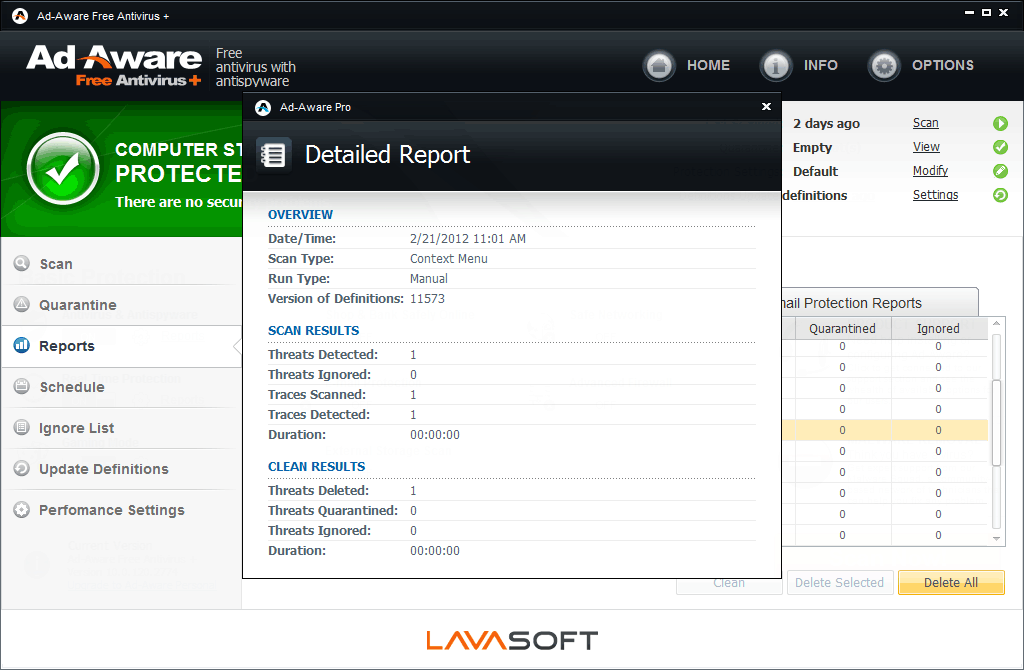 Bu emülasyon teknoloji malware’lerin birçok bilinmeyen türüne veya yeni türevlerine karşı korunma sağlar. Ad-Aware anti-malware teknolojisi sanal bir ortamda potansiyel siber tehditlerin davranışlarını gözlemleyerek analiz eder. Her şey arka planda yapılır ve herhangi bir kullanıcı müdahalesi gerekmez.