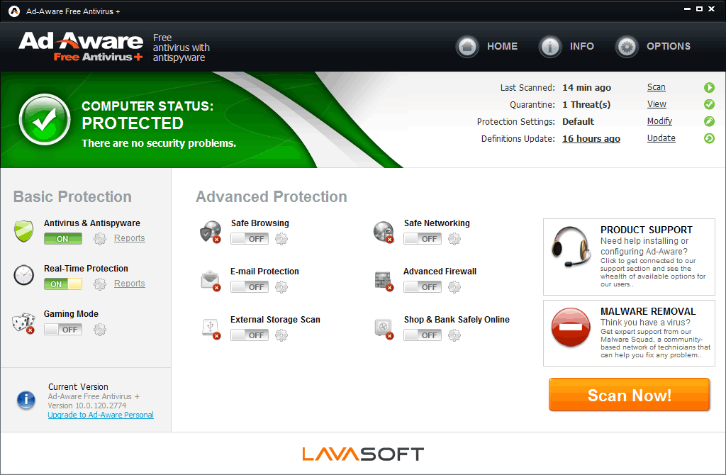 Ad-Aware Free Antivirus+ yepyeni arayüzü ile baştan sona yeniden tasarlandı. Start-up penceresi ve gelişmiş seçenekleri ile Ad-Aware’ın en popüler fonksiyonlarını sadece bir veya iki tıklama ile kolayca düzenleyip yönetebileceksiniz.
