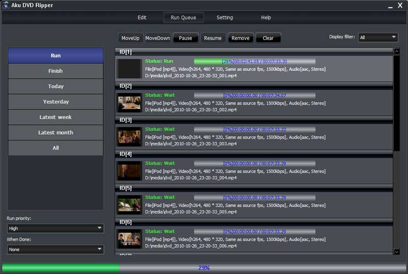 Aku DVD Ripper, DVD filmleri hemen hemen tüm video formatlarına dönüştürüp kopyalayabilen güçlü bir DVD kopyalama yazılımıdır. MPG AVC/H264 DVD, MP4, AVI, FLV vb. gibi formatları destekleyerek müthiş hızı ve olağanüstü kalitesi ile DVD filmlerinizi kopyalamanızı ve iPhone, iPad, iPod, Apple TV, Google Android, Zune, BlackBerry, PSP, PS3, XBox gibi multimedya cihazlarınıza yükleyebilmenizi sağlar. Böylece tüm DVD koleksiyonlarınızın keyfini cep telefonları ve taşınabilir tüm cihazlar üzerinde yaşayabileceksiniz. En sevdiğiniz filmleriniz artık hep sizinle olacak.