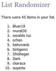1-Bluer19 2-murat30 3-osvaldo luz 4-orhan 5-bahcivanb 6-türkgenci 7-Shishegar 8-Dark 9-ckaraca 10-suyanto