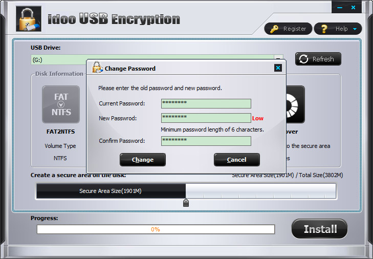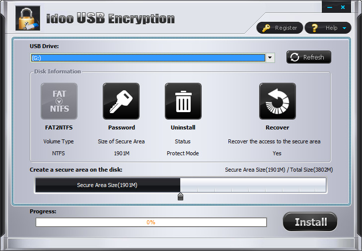 idoo USB Encryption, usb tüm harici aygıtları, taşınabilir araçları şifreler. usb flash sürücünüzün türü ne olursa olsun saniyeler içinde dosyalarınızı korumaya alır.
