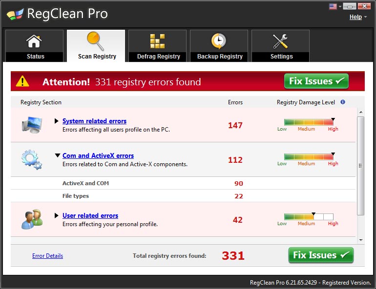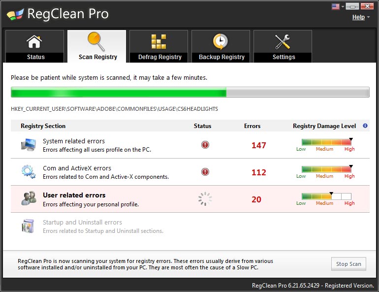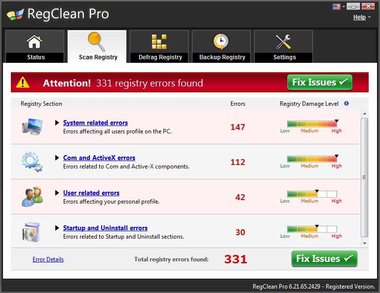 Windows kayıt defterinden eski ve geçersiz girdileri kaldırmak için düzenli olarak kullanılmalıdır. RegClean Pro gelişmiş tarama motoru, bir kaç basit tıklama ile otomatik olarak geçersiz kayıt defteri girişlerini tespit eder ve düzeltir.