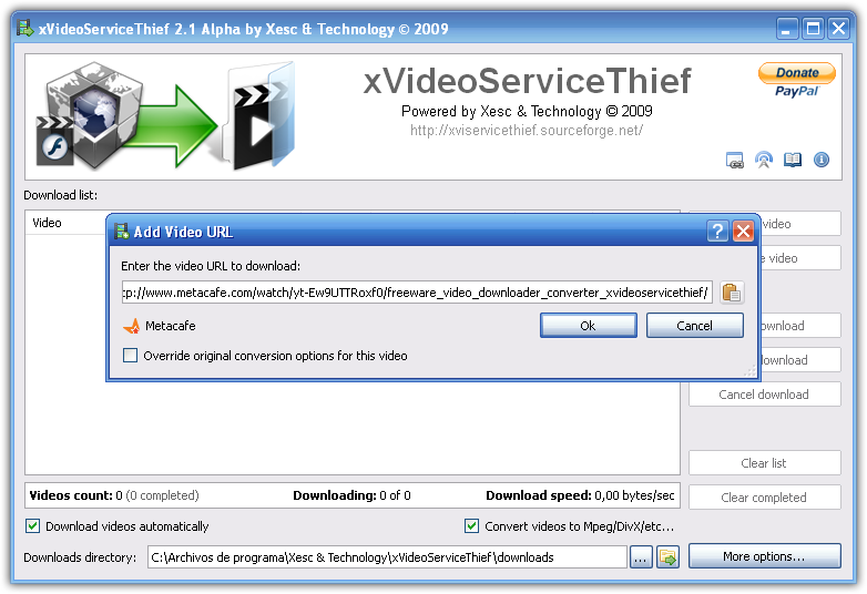 xVideoServiceThief, birçok video sitesinden en sevdiğiniz videoları indirmenizi sağlayan ücretsiz bir programdır. 93 video sitesini desteklemektedir ve bu sayı her geçen gün artmaktadır. Ayrıca yazılım en popüler video formatlarını da dönüştürme yeteneğine sahiptir. AVI, MPEG1, MPEG2, WMV, MP4, 3GP, MP3 dosya formatlarını destekler.