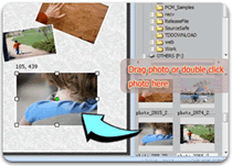Fotoğraflarınızı içeren klasörü seçin ve her fotoğrafın küçük bir görüntüsünü size gösterecektir. Basitçe sürükleyin ve arka plan üzerine resimleri bırakın. Her resmi yeniden boyutlandırın, etkiyi artırmak için tam olarak istediğiniz yere taşıyın, isteğinize göre az veya çok eğin.