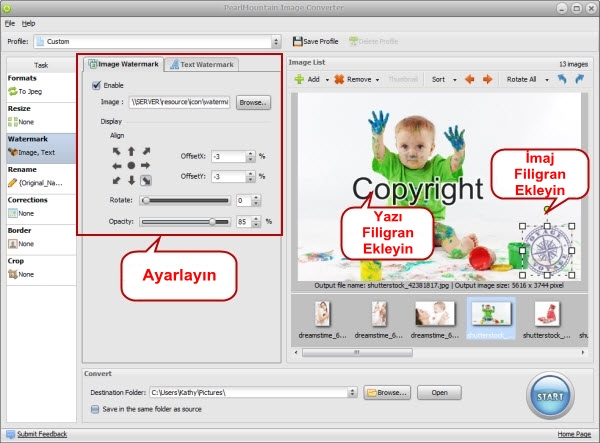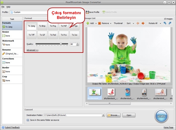 Sadece birkaç fare tıklaması ile bir defada yüzlerce görüntü dönüştürün.