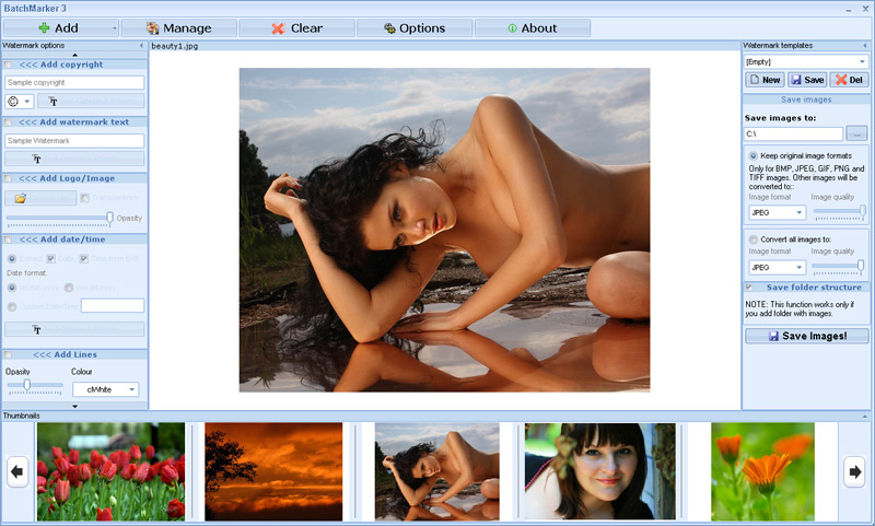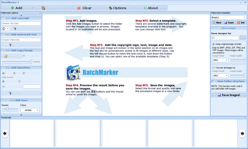 BatchMarker resimlere filigran eklemenize olanak tanır, program ile resimlerinize telif hakkı sembolü, metin, resim filigranları ekleyebilir ve toplu iş moduyla birden çok fotoğrafa filigran ekleyebilirsiniz. Sizde tüm resim veya fotoğraflarınıza filigran ekleyerek telif haklarınızı koruyun.