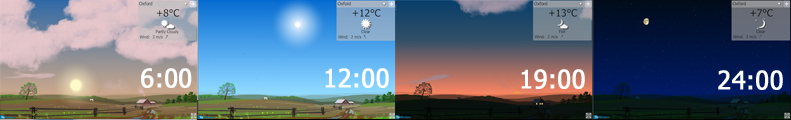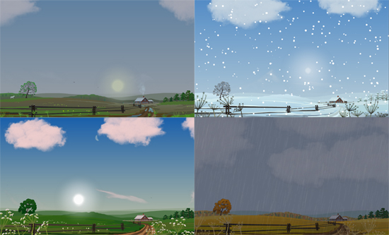 * Her hava durumu desteklenir. Parçalı bulutlu, yağmur, kar, dolu, sis, rüzgar, fırtınalı havalar, bulutlar, çimen, yağmur damlaları gibi