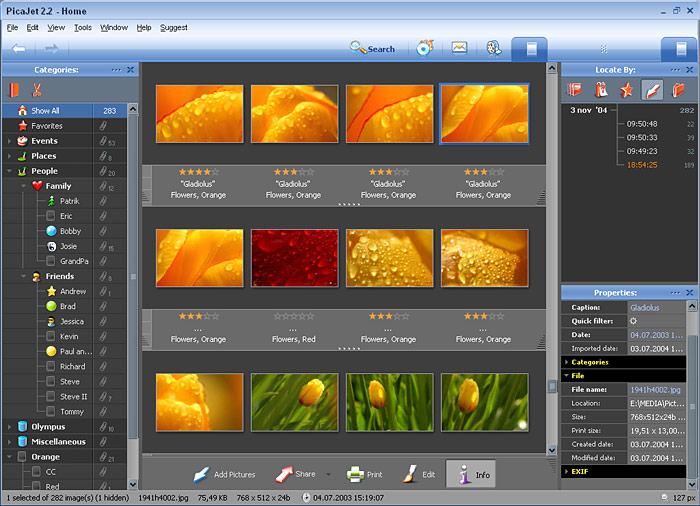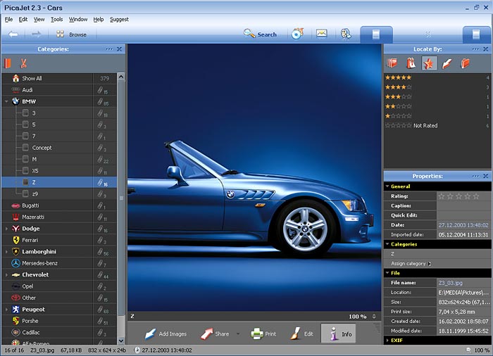 PicaJet, verimli ve hızlı bir şekilde büyüyen dijital resim koleksiyonunuzu organize edecek kadar güçlü, zengin özelliklere sahip bir resim programıdır. Son derece özelleştirilebilir ve kullanışlı dijital fotoğraf yönetimi ve resim düzenleme yazılımıdır. İçerisinde barındırdığı birçok özelliği ile resim dönüştürme, düzenleme, işleme, CD’lere yazdırma vb. gibi işlemler yapabilirsiniz. Birçok özelliğini kullandıkça farkına varacaksınız. PicaJet gerçekten çok güvenilir bir şekilde fotoğrafları yönetmek ve düzenlemek için kullanışlı bir yazılımdır. Ancak bazı özellikleri yazılımın bu ücretsiz sürümünde yoktur. Eğer daha fazla özellik kullanmak istiyorsanız, o zaman ücretli sürümüne yükseltmeniz gerekir. Türkçe dil yaması bulunmaktadır. Ücretli ile ücretsiz sürüm arasındaki farklara buradan ulaşabilirsiniz.
