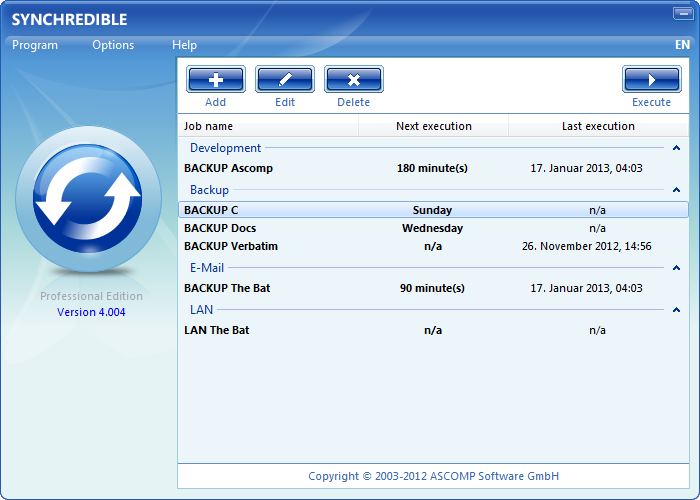 Synchredible, senkronize olarak verilerin kopyalanmasını sağlar bu nedenle yerden istifade edilir…. Tek bir dosya yada bütün bir sürücü yazılım sihirbazı ile önceden planlandığı şekilde, senkronize olarak eşzamanlı bir biçimde yedeklenerek saklanır….Program Otomatik olarak değişiklikleri algılar ve güvenli olarak en son düzenlediğiniz dosyaları eşzamanlı olarak son duruma göre günceller. Sizin tanımladığınız klasör ve dosyaları belirlediğiniz sürelerde senkronize olarak (Eşzamanlı) olarak usb yada network desteği sayesinde ağ üzerindeki başka bir makineye de yedekleyebilirsiniz.