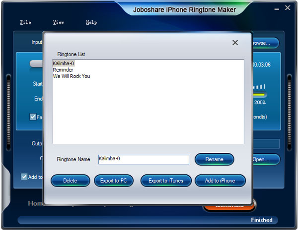 Joboshare iPhone Ringtone Maker ile iTunes’e şarkı yükleme, PC’ye gönderme, silme, yeniden adlandırma, vb. gibi ayarları yönetmenize olanak sağlar.