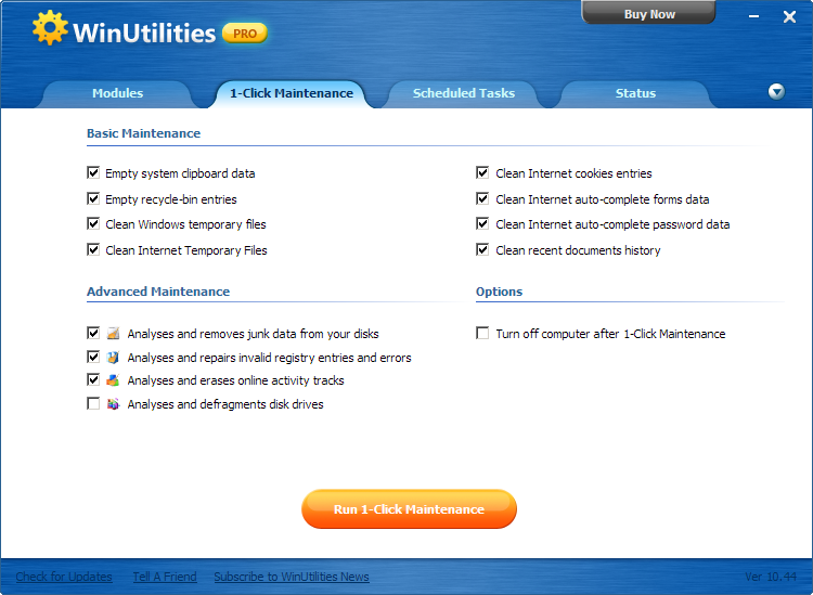 Bir Tık (1-Click) Bakım özelliği ile gereksiz dosyaları ve gereksiz kayıt defteri girdilerini tarayarak bulur ve çabucak düzeltir. Basit bir tıklama ile bilgisayarınızın sistem performansını artırmak için PC sorunlarını gidererek sistemi temizler.