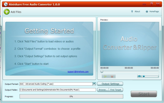 Ainishare Audio Converter, ses dosyalarını farklı formatlara dönüştürebilen ve farklı biçimlerdeki video dosyalarından sevdiğiniz ses ve müzikleri çıkarmak için tasarlanmış güçlü bir dönüştürücü ve ses çıkarma programıdır.