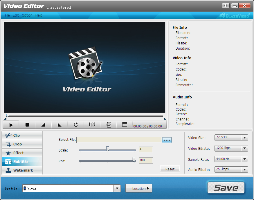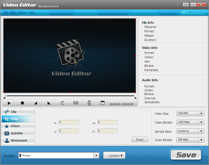 BlazeVideo Video Editor, videolarınızı kırpmanızı, döndürmenizi ve videolarınızı istediğiniz yöne çevirmenizi sağlayan güçlü ve işlevsel özellikleri olan bir video düzenleme yazılımıdır. Kullanımı son derece kolaydır. Ayrıca videolarınıza filigran şeklinde metinler ve altyazılar ekleyebilirsiniz. iPad, iPhone, iPod ve diğer cep telefonlarına düzenlediğiniz tüm sevilen videolarınızı aktarabilirsiniz. BlazeVideo Video Editor, videolarınızda en iyi sonuca ulaşmanız için video parlaklık, renk tonu, doygunluk ve kontrast düzenleme olanağı sağlar. En iyi ayar özelliklerini seçmeniz için önceden tanımlanmış pek çok video düzenleme ayarları da mevcuttur. Böylece videolarınızın en iyi kalitede ve istediğiniz doğrultuda olmasınız sağlayabilirsiniz. BlazeVideo Video Editor, videolarınız hakkında detaylı bilgileri de size sunabilir: Kaynak video bilgisi (dosya adı, biçimi, dosya boyutu, süresi), video bilgisi (format, codec, boyut, bit hızı, kare hızı) ve ses bilgisi (format, codec, bit hızı, kanal ve samplerate). Video düzenleme çalışmalarınızı tamamladıktan sonra her tür düzenleme bilgisine ulaşabilirsiniz.