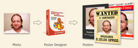 RonyaSoft Poster Designer, kendi poster ve afişlerinizi oluşturmanızı aynı zamanda yazdırmanızı sağlayan bir araçtır. Hazır poster şablonları içerir: Wanted, Film afişi, Motivasyon afiş, Billboard afiş, Magazin afiş ve İş, Parti, Komik, Tatil, Etkinlik ve diğer amaçlar için bünyesinde bulunan şablonları kullanabilirsiniz.
