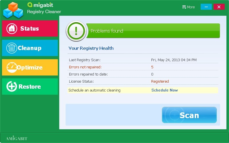 Amigabit Registry Cleaner ile PC yavaşlamalarını, çökmelerini, donmalarını, hata mesajlarını ŞİMDİ TÜM bu gibi sorunları çözümle…