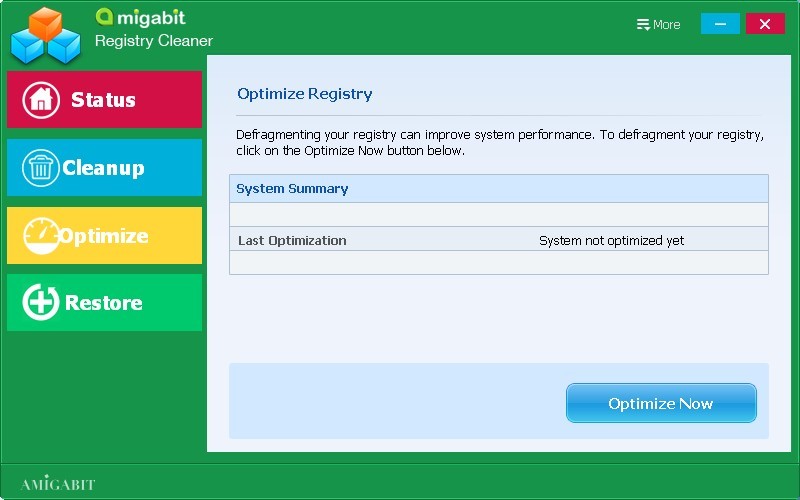 Bilgisayarınız her geçen gün biraz daha mı yavaş çalışıyor? Bilgisayarınızda çökme veya Windows hata mesajları çok mu oluşmaya başladı? Sistem performansını ve istikrarını geliştirmek istiyor musunuz? Eğer tüm sorulara evet cevabı veriyorsanız sizin Amigabit Registry Cleaner programı kullanma zamanınız tam olarak gelmiş demektir. Amigabit Registry Cleaner, bilgisayar yavaşlamalarını, çökmelerini, donmalarını ve hata mesajları gibi tüm sorunları çözümlemenizi sağlayan bir programdır. Kayıt Defteri hatalarını tespit eder ve sorunları temizleyerek PC’nizi hızlandırır. Bilgisayarınızı, hızlı, özel, istikrarlı ve sağlıklı tutar. Optimizasyon düğmesine 1-tıkla otomatik olarak çalışacak ve bilgisayarınızın performansını arttıracaktır. Yazılım Yasal Program tarafından Türkçe’ye çevrilmiştir. Programı Türkçe olarak kullanabilirsiniz.