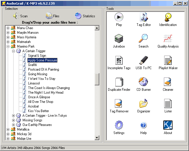 AudioGrail programı İsviçre Çakısı gibi pek çok aracı içinde barındıran harika bir yazılımdır. Her türlü ses formatındaki dosyalarınızı (MP3, MPC, OGG vb…) düzenlemenizi sağlar. MP3 şarkılarınızın kalitesini kontrol edebilir ve onların ses kalitelerini artırabilirsiniz. Sanatçı, şarkı, albüm isimlerini ve daha birçok etiket düzenlemelerini rahatça yapabilirsiniz. Üstelik Türkçe… Artık müzik dosyalarınızın tüm kontrolü sizin elinizde!..
