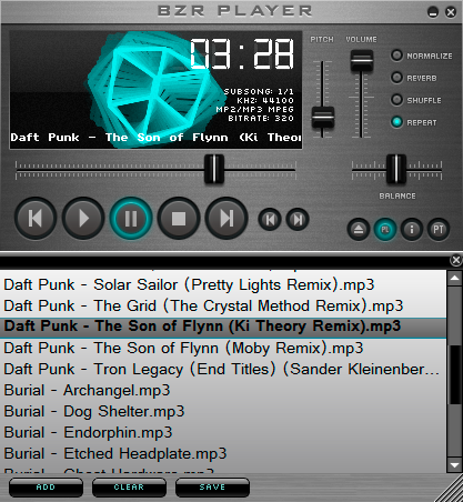 BZR Player, MP3, WAV, WMA, VAG ve daha birçok popüler formatlardaki ses dosyalarını çalabileceğiniz ücretsiz bir müzik oynatıcısıdır. 480′den fazla ses formatlarını destekler. Basit ve anlaşılır bir arayüzü sahiptir. Sürükle ve bırak ile dosya ekleme ya da sadece bir klasör ekleme ile tüm şarkı içeriğini çalma özelliği bulunmaktadır. Bu ücretsiz ses çalar ile sıkıştırılmış klasör içinde bulunan sesleri ve müzikleri oynatabilirsiniz.
