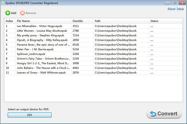 EPUB to PDF Converter, Windows için evrensel bir e-kitap dosyası dönüştürücüsüdür. Endüstri standardında e-kitap dosyalarını PDF dosyalarına orijinal desen ve kalite ile dönüştürmenizi sağlar. Dönüştürdüğünüz e-kitaplarınızı taşınabilir Apple cihazları, Nook, Kobo vb. gibi e-okuyucu tüm cihazlara yükleyerek okuyabilirsiniz.
