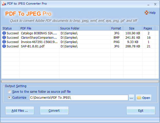 PDF To JPEG Pro, PDF belgelerini JPG, TIF , BMP, PNG , GIF ve diğer popüler görüntü biçimlerine dönüştüren bir windows programıdır. DPI ve sayfa aralığını özelleştirebilirsiniz . Ayrıca, Toplu Mod desteği bulunur.
