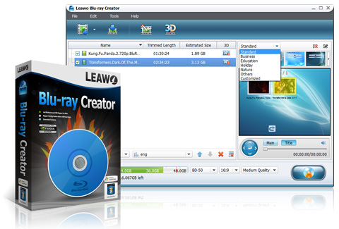 Leawo Blu-ray Creator, verilerinizi ve Blu-ray filmlerinizi DVD’lere yazdırabilen güçlü bir programdır. Blu-ray disklere (BD-25, BD-50) videolar yazdırmanız mümkündür. Çoklu DVD (DVD-5, DVD-9) oluşturabilir ve videoların ISO’larını oluşturabilirsiniz. Filmlerinizi ve videolarınızı yazdırmadan önce düzenleyebilirsiniz. Videoları kırpabilir, istenmeyen bölümünü kesebilir, videolara efektler verebilirsiniz. Daha birçok özelliği ile vazgeçilmeziniz olabilir.