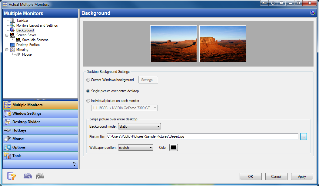 Çoklu monitör arka plan duvar kâğıdı - Masaüstü arka planını özelleştirmek için ek yetenekleri vardır.