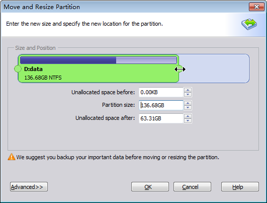 Sabit diskleri yeniden düzenlemek için yeniden boyutlandırma ve bölüm taşıma.