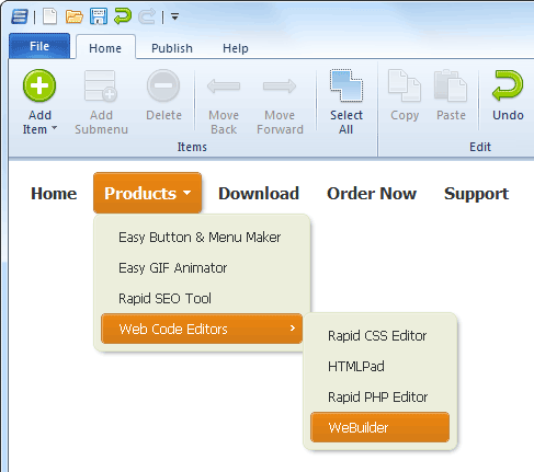 Easy Button & Menu Maker menüleri hızlıca ve zorlanmadan anında oluşturur.