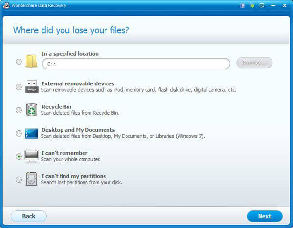 Wondershare Data Recovery, Windows sistemler için hızlı, güvenli ve güvenilir bir veri kurtarma programıdır. Silinmiş verileriniz ne olursa olsun, ister biçimlendirilmiş ya da artık ulaşılmaz bir yerde olsun, Wondershare Data Recovery için hiç sorun değil. Biçimlendirme veya yanlışlıkla silme nedeniyle herhangi bir sabit disk veya harici sabit disk, iPod, USB sürücü, SD kart, dijital kamera, cep telefonu ve MP3/MP4 çalar, kayıp fotoğraflar, video, belge, e-posta ve arşiv dosyaları kurtarmak artık çok kolay. Virüs bulaşması, yanlış kullanım, beklenmedik elektrik kesintisi ve diğer bilinmeyen nedenlerden dolayı silinen tüm verilerinizi geri getirebilirsiniz.