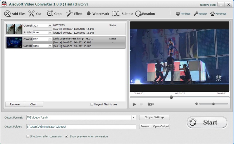 AisoSoft Video Converter, yüksek hız ve kaliteli bir şekilde kayıpsız video ve ses dosyalarını dönüştürmenizi sağlar. Windows 8, Win7 (32 ve 64 bit), XP ve Vista da dâhil tüm Microsoft sürümleriyle çalışır. iPad, iPhone, Samsung, HTC, PS, vb. gibi cihazlarınızı destekler. Videolarınızı kesme, birleştirme, bölme, kırpma, döndürme, parlaklık, doygunluk, filigran ekleme gibi birçok düzenleme özelliği ile istediğiniz gibi ayarlayabilirsiniz.