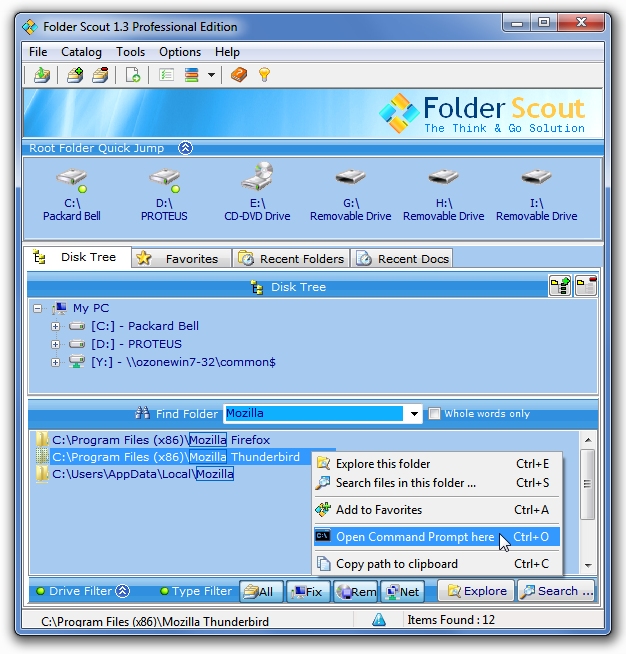 Folder Scout Standard, binlerce Klasörün içinden diğer bir klasör ve dosyaya anında geçiş yapabilirsiniz. Ulaşmak istedeğiniz bir klasöre sadece klasörün ilk belirleyici harfini yazarak anında geçiş yapabilirsiniz.