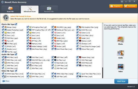 Jihosoft Photo Recovery, dijital fotoğraf makinesi, hafıza kartı, USB sürücü, sabit disk ve diğer depolama aygıtlarındaki silinmiş tüm değerli resim, video ve ses dosyalarını birkaç tıklama ile geri yükler. Silinmiş önemli medya dosyalarınızı bulmak ve tamamen geri getirmek için size yardımcı olur. Kolay kullanımlı bu dijital fotoğraf kurtarma yazılımı hem yeni başlayanlar hem de profesyoneller için mükemmel bir medya kurtarma programıdır.