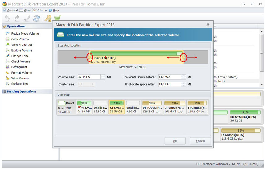 Yeniden boyutlandırma ve bölme ile çok uygun bir boyuta diski yeniden düzenleme.