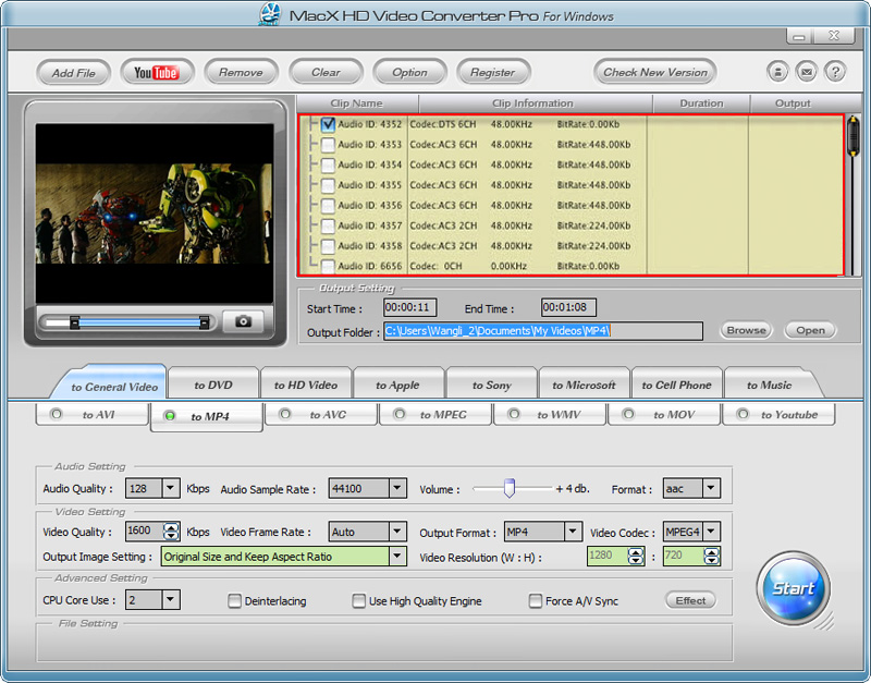 320′den fazla video ve 50′den fazla ses codec ile MacX Video Converter Pro, MOV, AVI, WMV, MP4, MKV, AVI, MKV, FLV M2TS olarak 180′nin üzerinde video formatlarını, herhangi bir video formatına dönüştürmenize olanak sağlar. Aynı zamanda video dosyasından sesleri ve müzikleri çıkarabilir ve MP3, WAV, AAC, FLAC, ALAC, vb. gibi 14 popüler ses formatlarına dönüştürerek taşınabilir cihazlara aktarabilirsiniz.