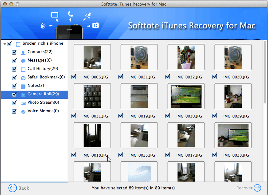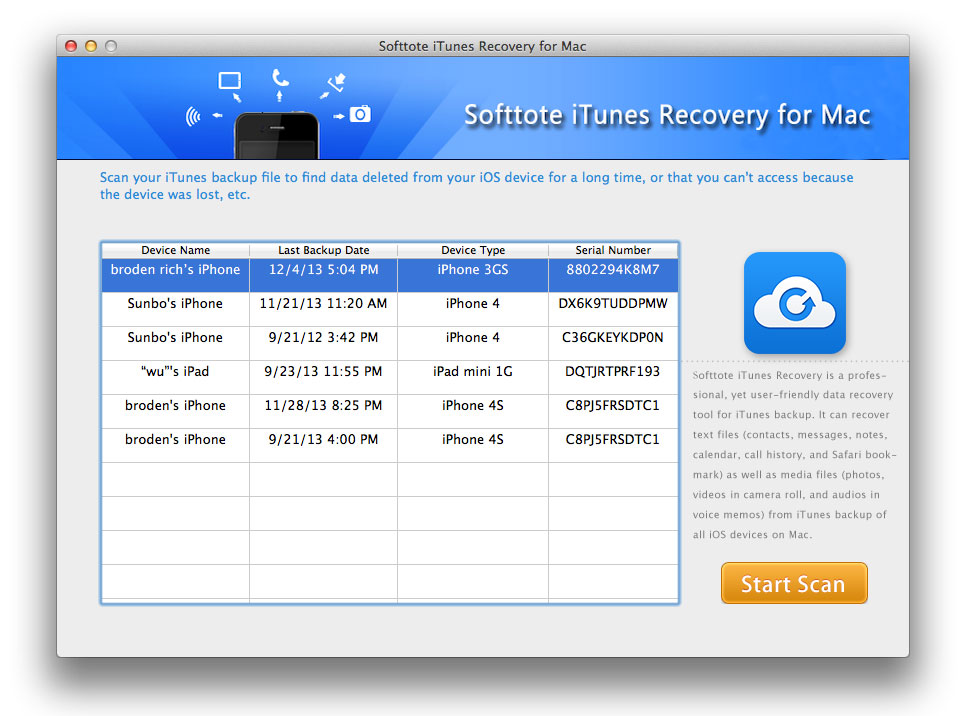 iTunes yedekleme dosyalarına hızlı ve iyice gelişmiş tarama teknolojisi ile tarayıp kurtarabilirsiniz.