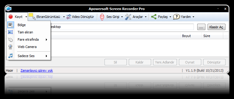 Apowersoft Screen Recorder, ekran ve ses etkinliği aynı anda kayıt için kullanımı kolay ve profesyonel bir masaüstü araçtır. Ayrıca videoları standart WMV dosyası olarak kaydetmenize olanak sağlar. Dahili çevirici ile kalite kaybı olmaksızın diğer (AVI, MP4, FLV , SWF) vb.. formatlara dönüştürebilirsiniz. Ayrıca, zamanlanmış görevler oluşturabilir, tam pencere, seçilmiş pencere ve özel alan seçme dahil resim yakalamayı destekler.