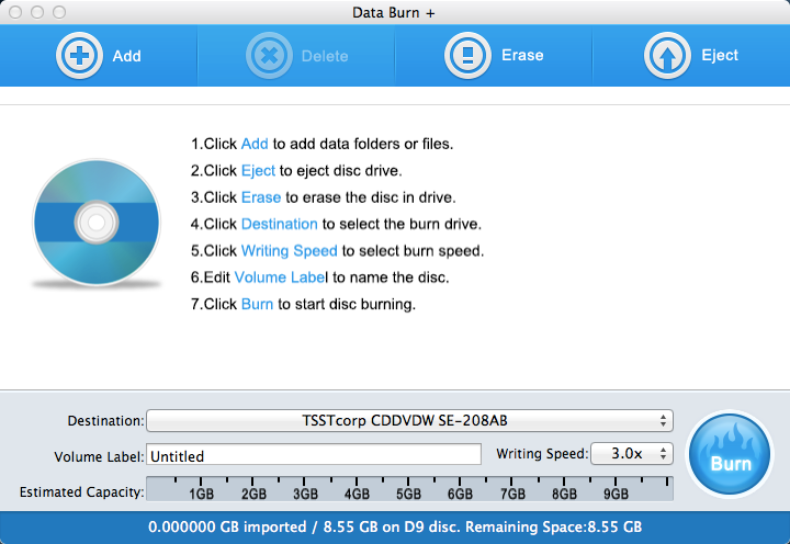WaveInsight Data DVD Burner for Mac, kolayca DVD disklere önemli dosya ve klasörlerinizi yazdırmanızı sağlar. Önemli verilerinizi düzenleyip disklere hızlı ve kolayca yazdırabilirsiniz.