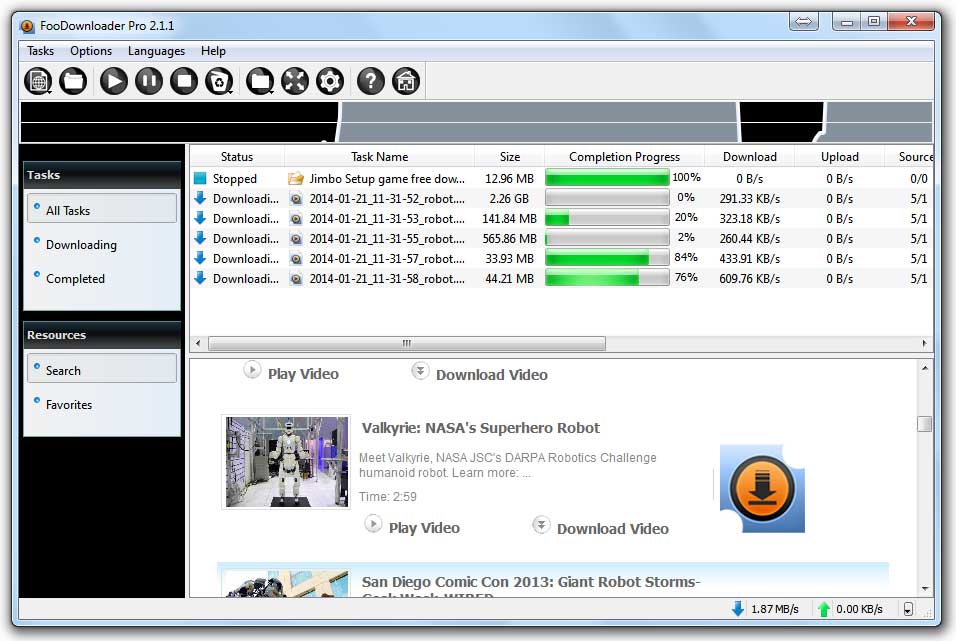 FooDownloader ile her şeyi ara ve indir. Paylaşılan dosyaları, görüntü, ses ve web videolar dahil olmak üzere internet üzerinde arama yapabilir ve bunları indirebilirsiniz. FooDownloader arama sonuçlarını listeler ve birden fazla gömülü arama motorları destekler. FooDownloader dosyaları indirirken ayrıntıları kontrol etmenize ve indirilen dosyaları yönetmenize olanak sağlar. FooDownloader video dosyalarını indirirken önizlemeyi destekler. Üstelik Türkçe dil desteğine sahiptir.