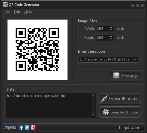 QR Code Generator, QR kodları oluşturmak ve png resim dosyası olarak oluşturulan kodları kaydetmenize sağlayan bir yazılımdır. Bu QR kodları (Quick Response Kodları) sizin tarafınızdan girilen bilgiyi gizlice saklayan siyah ve beyaz renklerde oluşturulan bir dizi koddur. Bu QR Code Generator yazılımı kullanarak, herhangi bir özel metin veya görüntü içinde gizli kalacak bir web bağlantı ekleyebilirsiniz. Ayrıca hata düzeltme seviyesi (düşük, orta, ya da yüksek) seçerek size bir hata düzeltme özelliği sunar. Bu kodları akıllı telefonunuzdaki kod okuyabilen uygulama ile açabilir ve kodda gizlenmiş siteye ulaşabilirsiniz.