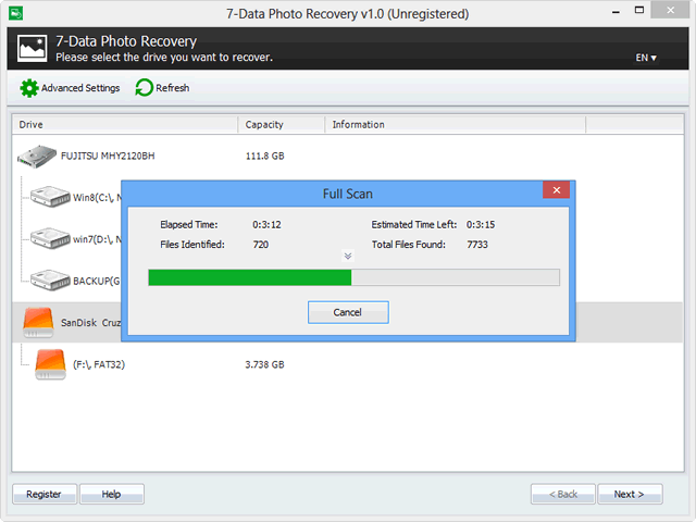 7-Data Photo Recovery, yerel sürücüler, SD kartlar, USB cihazları ve daha farklı depolama ortamından hemen hemen her türlü yanlışlıkla silinmiş değerli fotoğraf, video ve ses dosyalarınızı kurtarmanızı sağlar. Hepsi birer hazine değerindeki anılarınızı artık kaybetmekten korkmayın. Eski kameralar, cep telefonları, hafıza kartları ve sabit disklerden yanlışlıkla sildiğiniz veya bir sistem hatası yüzünden silinen resimler, video ve ses dosyalarınızı kolayca geri getirin.