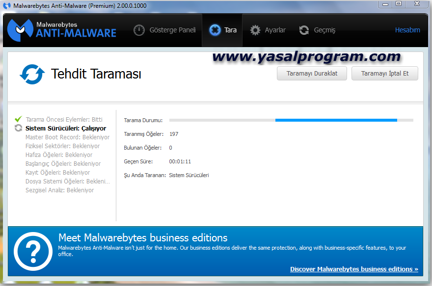 Ev kullanıcılar için karışıklığı önlemek adına PRO sürümünü Premium adını vermişler. Yazılımın artık lisansını ömür boyu olarak satın alamıyorsunuz. Senelik lisansını alabilirisiniz. Tabii ücretsiz versiyonu da yine mevcut ancak bu versiyonunda bazı koruma özellikleri her zamanki gibi aktif değil. Daha önceden yazılımın ömür boyu lisansını satın aldıysanız yeni sürüme ücretsiz geçiş yapabilirsiniz. Ve bu hakkınız firma tarafından korunmaktadır. Yani eskisi gibi ömür boyu yazılımı kullanabilirsiniz. Sizin için çalışır Anti-Malware/Anti-Spyware Buradan ücretsiz veya Premium sürümünü indirip deneyebilirsiniz. (Ücretsiz sürümünü 14 gün boyunca Premium olarak kullanabilirsiniz) Sürüm 2.0 Fiyatı: $24.95 (3 PC 1 senelik)