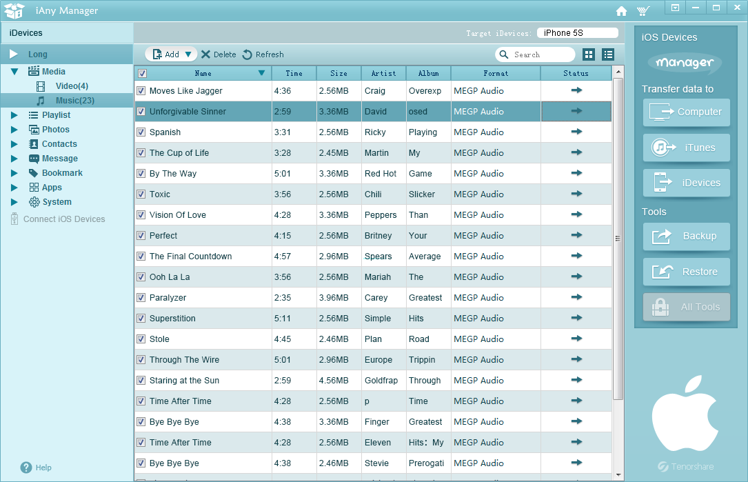 Tenorshare iAny Manager, sadece tek bir tıklama ile iOS mobil cihazlarınızdaki verilerinizi yönetmenizi sağlayan kolay kullanımlı bir yazılımdır. iOS sistem yöneticisi bu yazılım ile iPod / iPhone / iPad, PC ve iTunes arasında serbestçe müzik, video, çalma listeleri, fotoğraflar, kişiler, SMS vb. gibi birçok verinizi aktarmanızı sağlar. Ayrıca tek tıklama ile tamamen iOS verilerinizi yedekleyebilirsiniz.